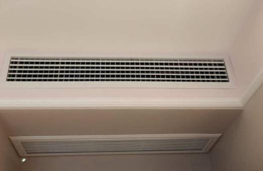 为了降低风管机的噪声,在一定条件下,可以采用吊顶回风(即把风管机所在的整个吊顶空间当作回风箱),风管机不采用下回风,而采用后回风。风管机进风口面对的隔墙的表面,可以贴一层厚度为10-20mm的吸音材料,可以进一步吸收和降低噪音。吊顶回风时,百叶回风口可以远离室内机的进风口以降低噪音,如当室内机位于吊顶中部时,回风口可以开在吊顶的两侧。